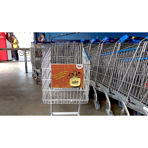 Esse tipo de material promocional costuma ter grande potencial de conversão, pois dependendo do comércio os carrinhos serão o principal ponto de contato do consumidor e todas as vezes que ele olhar para o carrinho poderá ver o anúncio da marca.